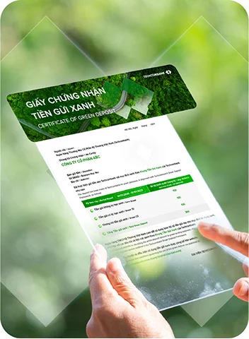 On a monthly basis, Techcombank will email the Green deposit Certificate to your business, reflecting the average Green Deposit balance of the preceding month..