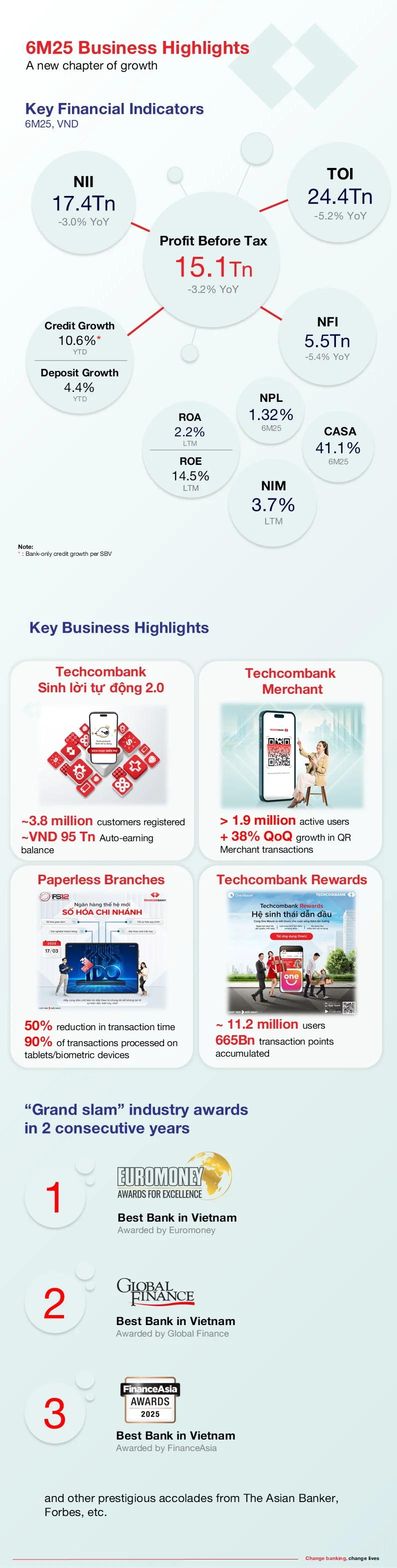 “In 2Q25 Techcombank delivered its highest ever PBT of VND 7.9 trillion. Customer credit demand rebounded strongly, resulting in double-digit YTD credit growth and reflecting Vietnam’s robust economic momentum.