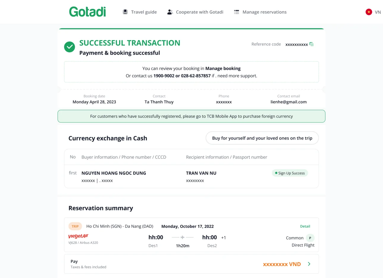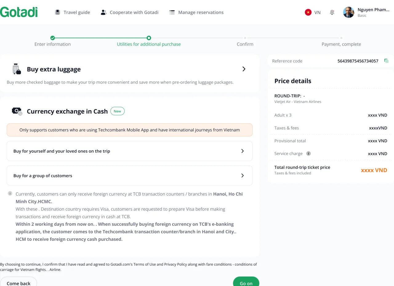 1. Registering for foreign currency exchange when purchasing flight tickets on Gotadi: