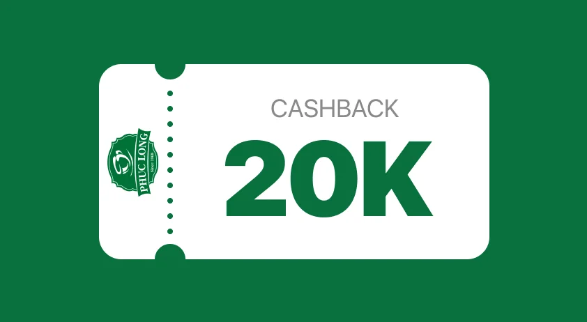 Applicable for Phuc Long transactions from 55K. Valid until 31/10/2024.