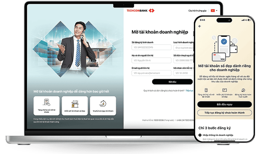 Mở tài khoản doanh nghiệp và đăng ký sử dụng các tiện ích vượt trội của Ngân hàng số Techcombank Business
