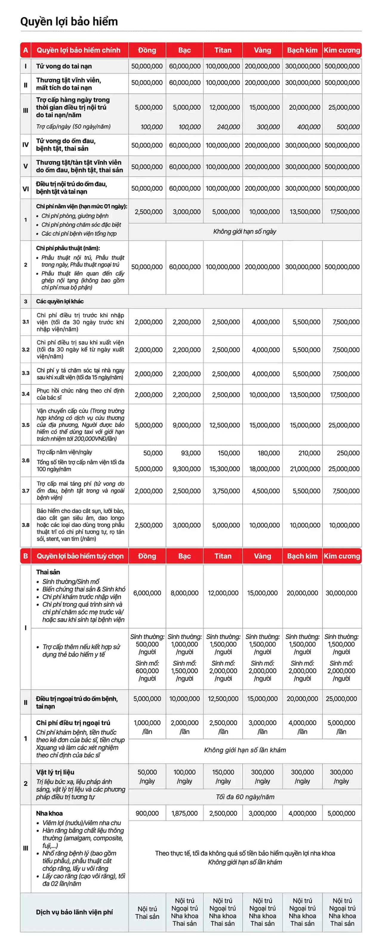 - Quyền lợi bảo vệ đến 500 triệu đồng/Người/Năm