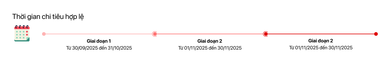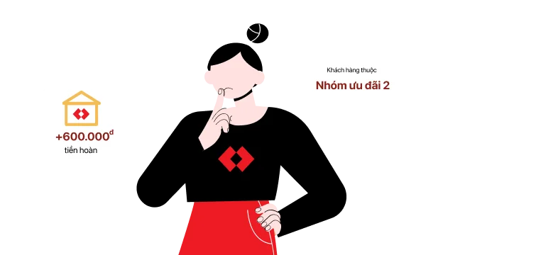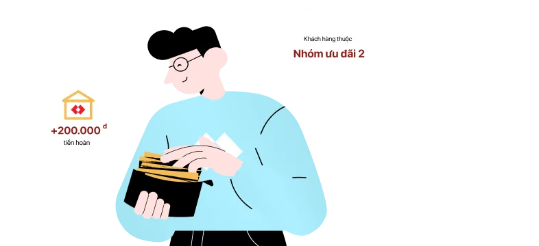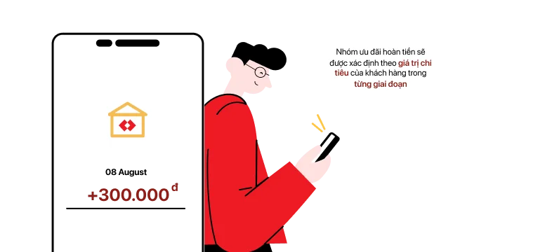 Nhóm ưu đãi hoàn tiền sẽ được xác định theo giá trị chi tiêu của khách hàng trong từng giai đoạn, nên anh Duy được hoàn 100 ngàn đồng trong giai đoạn 1, và 100 ngàn đồng trong giai đoạn 2.