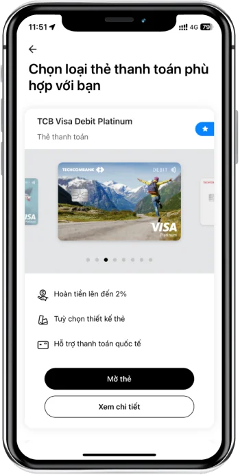 (*) Khách hàng có thể đến chi nhánh gần nhất để được hỗ trợ mở thẻ thanh toán Techcombank