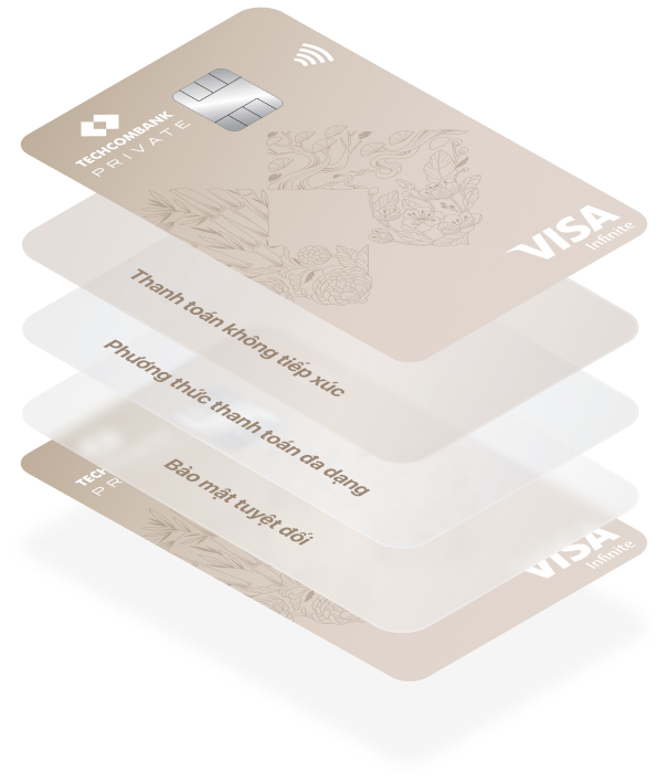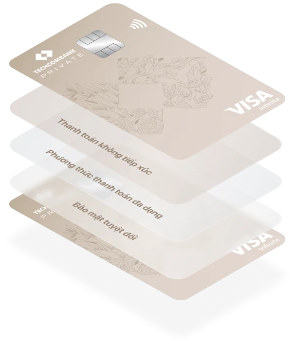 Techcombank Private Visa Infinite - Dòng thẻ tín dụng đẳng cấp thế giới được phát hành giới hạn, dành riêng cho số ít hội viên cao cấp nhất tại Việt Nam với những đặc quyền xứng tầm. Chủ nhân sở hữu sẽ trải nghiệm đa dạng đặc quyền thượng lưu, như nâng hạng vé máy bay thương gia, sử dụng phòng chờ cao cấp, hỗ trợ thủ tục nhanh chóng và đón tiễn tại các sân bay trên khắp thế giới.