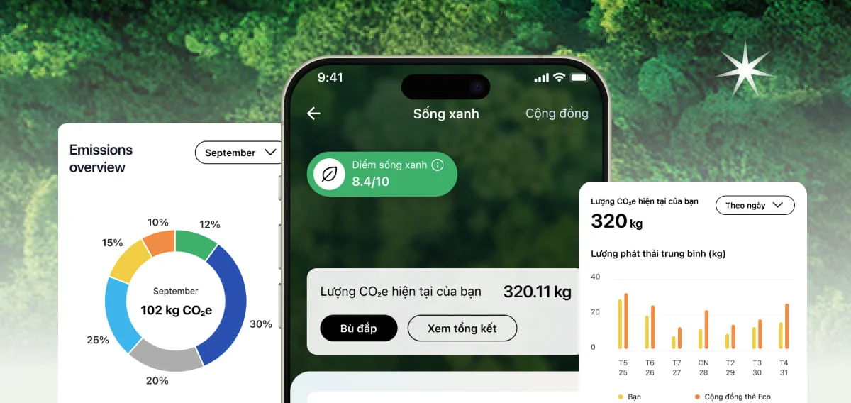 Để bù đắp tác động của CO₂, thẻ Eco sẽ giúp bạn kết nối với các dự án bảo vệ môi trường tại Việt Nam.