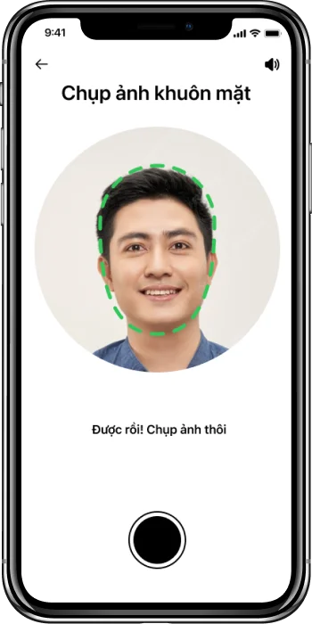 Giữ khuôn mặt nằm gọn trong khung hình và nhấn chụp khi nét đứt chuyển màu xanh