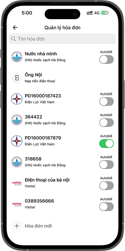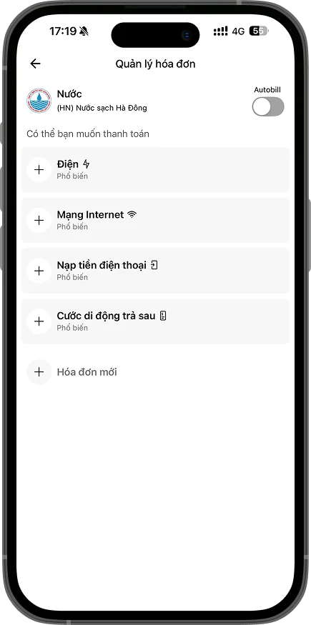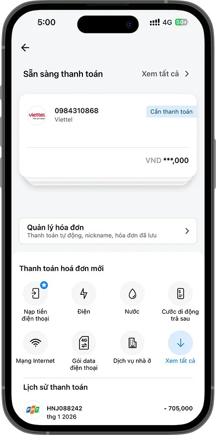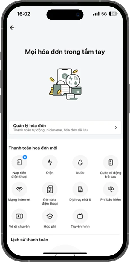 | Ưu đãi thanh toán hóa đơn | Áp dụng tính năng thanh toán hóa đơn tự động | |