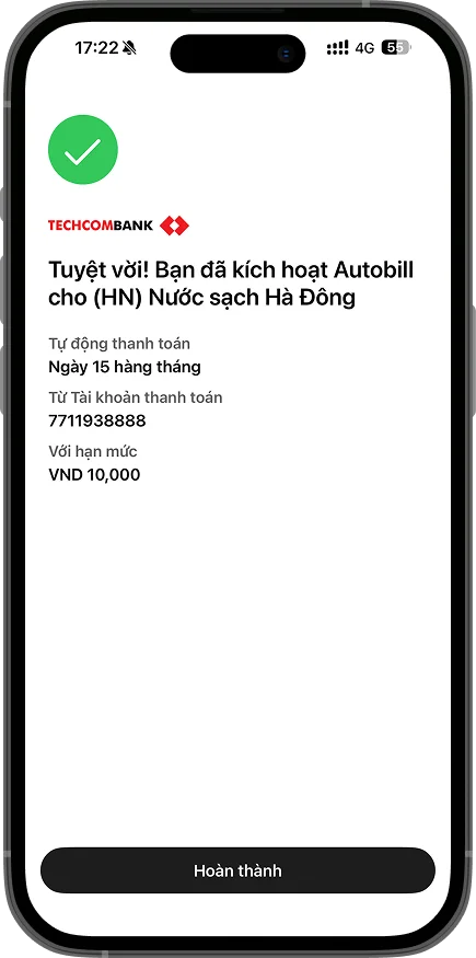 Khách hàng được nhận ưu đãi khi thực hiện thanh toán hóa đơn trên Techcombank Mobile (Không áp dụng cho giao dịch nạp tiền điện thoại & gói data điện thoại).