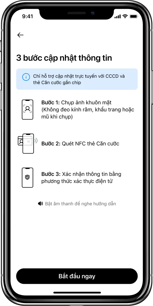 ❖ Sử dụng thiết bị di động có hỗ trợ đọc thông tin chip CCCD, thẻ Căn cước (NFC)