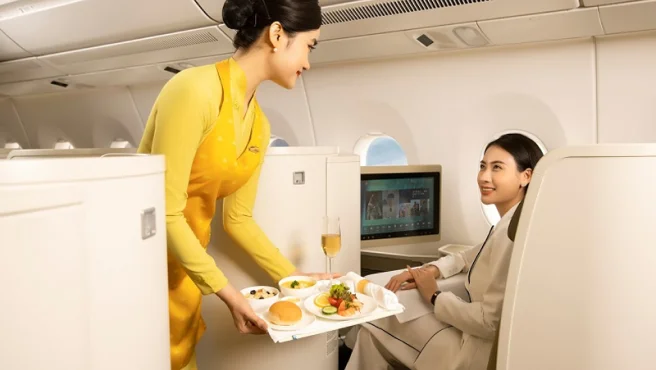 Nâng tầm trải nghiệm và tận hưởng dịch vụ hàng không cao cấp và các tiện ích, tiện nghi chuyên biệt dành riêng cho hạng vé thương gia.