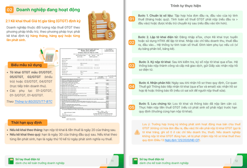 - Bước 5. Lưu chứng từ: Lưu tờ khai và thông báo đã nộp làm căn cứ. Thực hiện nộp tiền thuế GTGT (nếu có phát sinh số phải nộp) trước hạn quy định (thường cùng hạn nộp tờ khai).