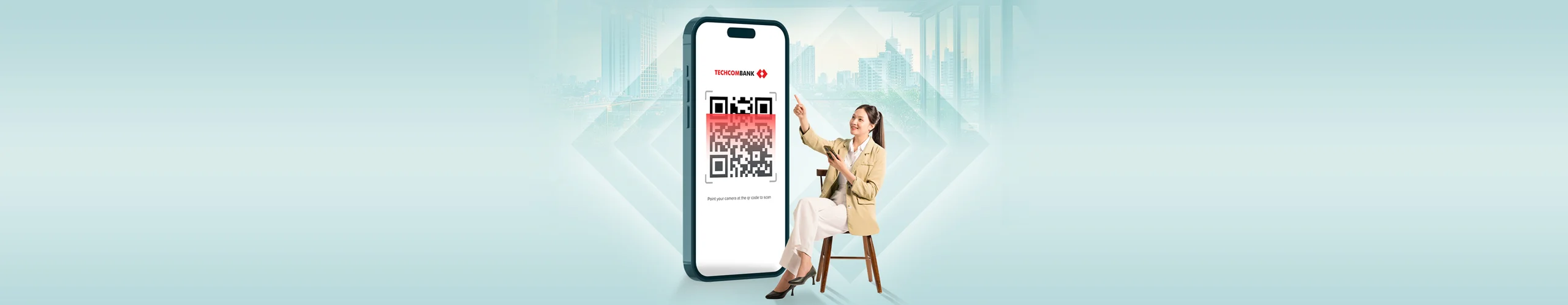 Chủ cửa hàng có thể tạo mã QR động tương ứng với từng giao dịch khi đăng ký giải pháp mã QR Cửa hàng trên Techcombank Mobile.