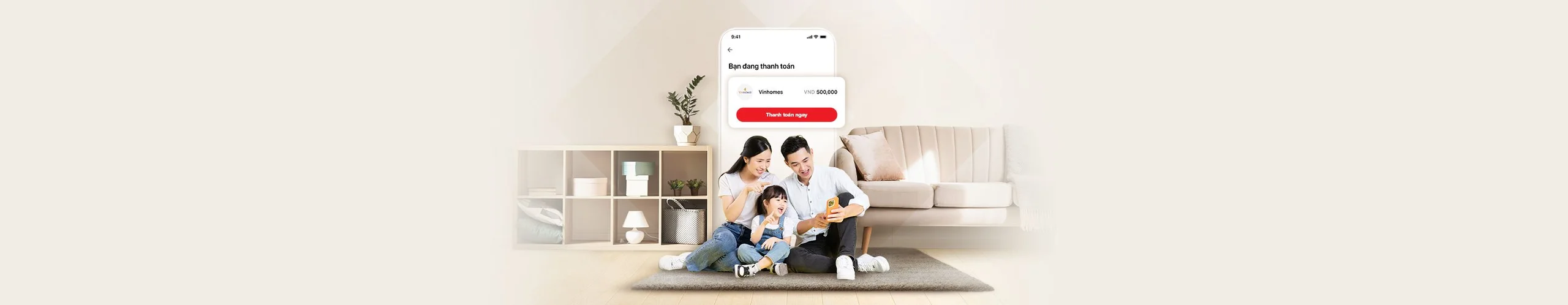 Sử dụng tính năng thanh toán Hóa đơn để thanh toán dịch vụ nhà ở trên Techcombank Mobile.