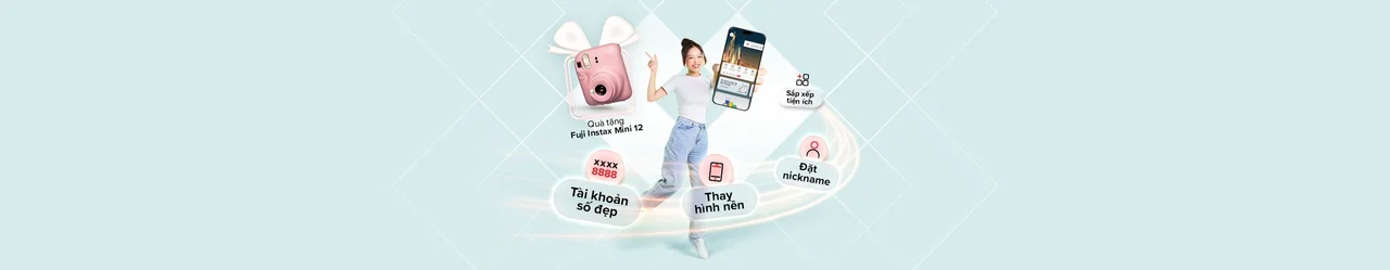 Tham gia minigame cùng Techcombank, chia sẻ về trải nghiệm với các tính năng yêu thích trên Techcombank Mobile và tận hưởng quà tặng hấp dẫn giúp bạn lưu lại mọi khoảnh khắc - máy ảnh Fujifilm Instax MINI 12