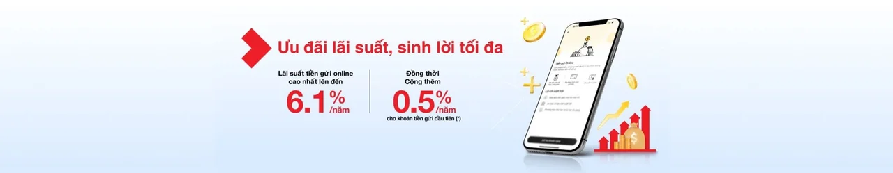 Với mong muốn giúp khách hàng an tâm tích lũy, sinh lời ổn định cho khoản tiền nhàn rỗi của mình, Techcombank triển khai chương trình tăng lãi suất tiền gửi online, cụ thể từ ngày 18/04/2022 lãi suất tiền gửi online cao nhất lên tới 6,1%/năm, đặc biệt với những khách hàng mở mới khoản tiết kiệm đầu tiên trong thời gian triển khai chính sách sẽ được cộng thêm đồng thời 0,5%/năm, đừng bỏ lỡ cơ hội để tích lũy cho tương lai.