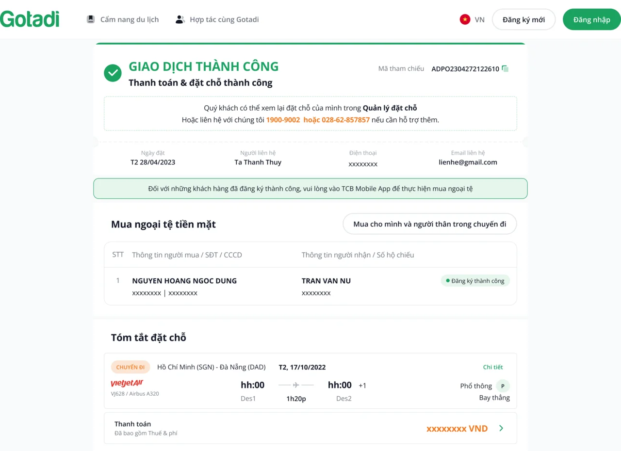 1. Đăng ký đổi ngoại tệ khi mua vé máy bay tại Gotadi: