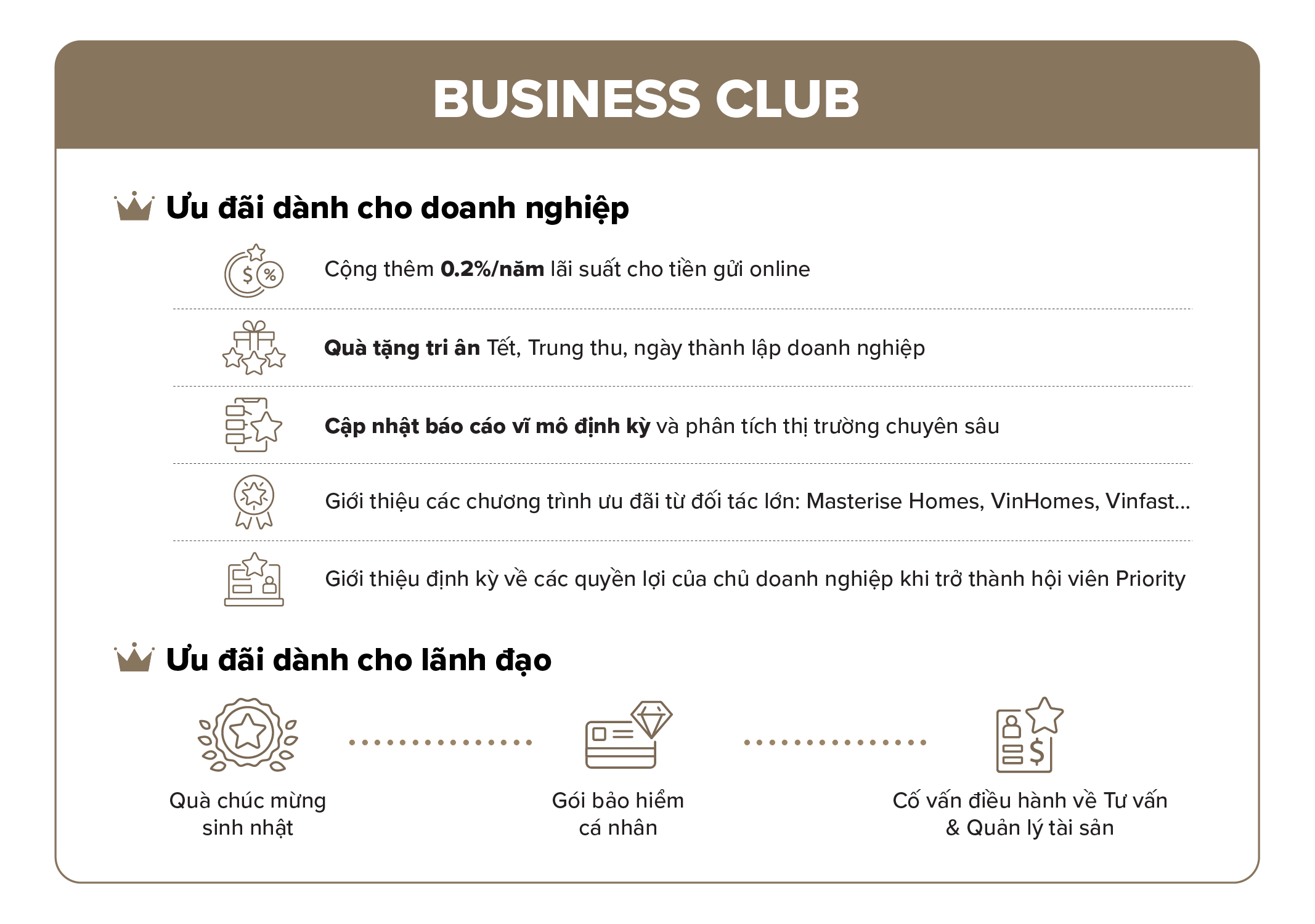 Với mỗi cột mốc thành công mới, doanh nghiệp đều xứng đáng nhận được những đặc quyền xứng tầm. Chương trình đối tác thân thiết từ Techcombank không chỉ mang lại những ưu đãi tài chính vượt trội mà còn mở ra cơ hội hợp tác chiến lược, giúp doanh nghiệp khẳng định vị thế và bứt phá trên hành trình phát triển lâu dài.