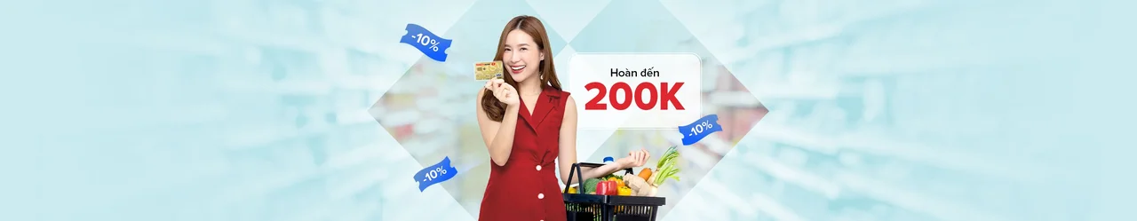 | Nhóm ăn uống | Hoàn 10%, tối đa 200.000 VND cho hóa đơn từ 1.000.000 VND | - Mỗi khách hàng chỉ nhận ưu đãi tối đa 1 lần trong mỗi lĩnh vực chi tiêu - Tổng giá trị hoàn tối đa 600.000 VND trong suốt thời gian diễn ra chương trình |
