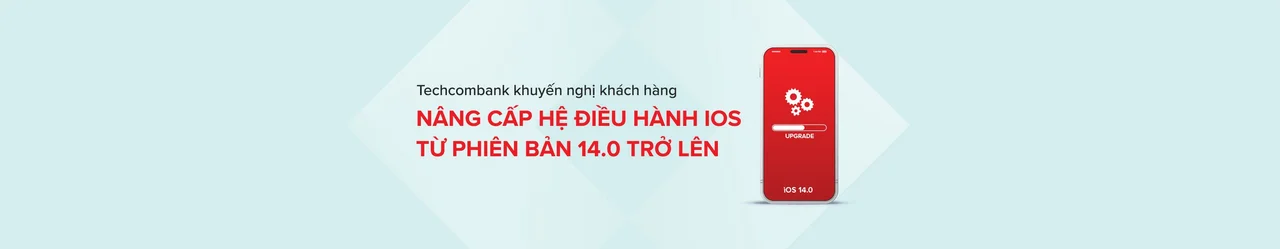 Nâng cấp hệ điều hành của thiết bị lên iOS 14.0 trở lên để sử dụng Techcombank Mobile với đầy đủ các tính năng dịch vụ mới sau ngày 12/05/2023