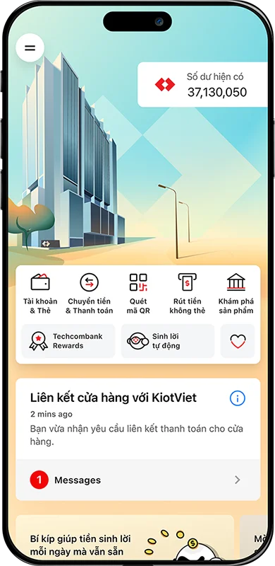 Techcombank kết hợp cùng KiotViet ra mắt tính năng liên kết QR cửa hàng vào phần mềm bán hàng. Chủ shop sẽ nhận thông báo kết quả giao dịch tức thì ngay trên phần mềm bán hàng – giúp quản lý kinh doanh tiện lợi, tiết kiệm chi phí và hạn chế sai sót.