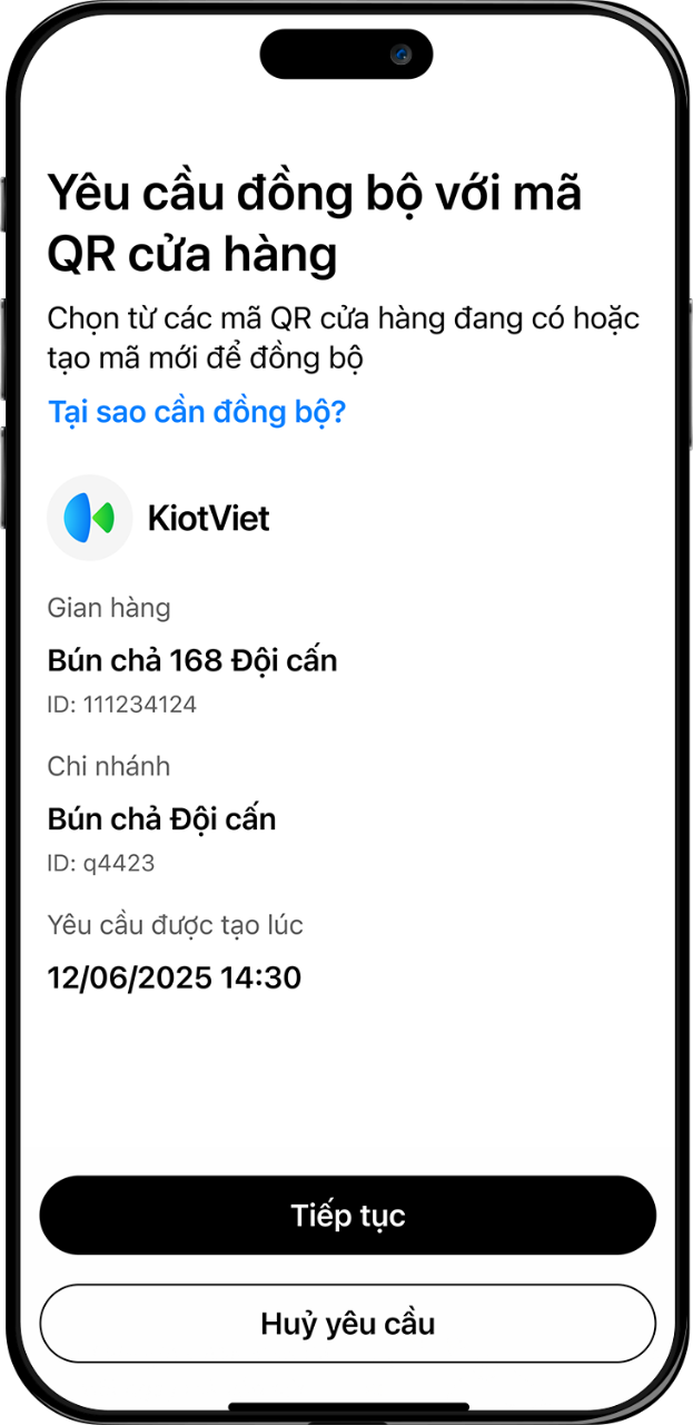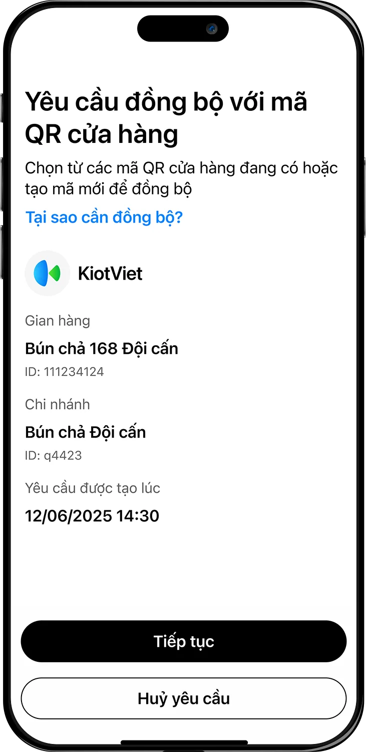 Đăng ký dịch vụ và thực hiện liên kết trên KiotViet (*). Sau đó, xác thực liên kết trên Techcombank Mobile