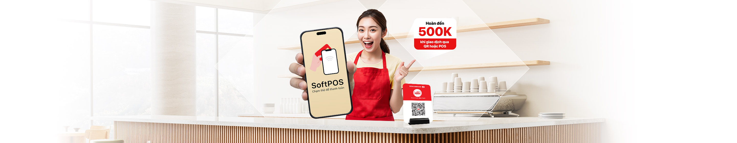 Techcombank dành tặng ưu đãi hấp dẫn cho chủ shop lần đầu đăng ký công cụ quản lý doanh thu. Chỉ cần mở QR cửa hàng hoặc POS, chủ shop vừa nhận thanh toán nhanh gọn, vừa quản lý doanh thu dễ dàng và được hoàn tiền cho mỗi giao dịch lên đến 500,000 VND.