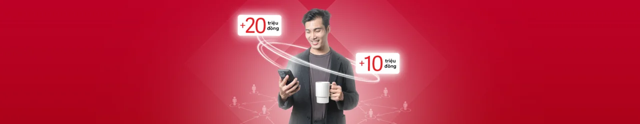 | Nhận thưởng 1-3 triệu VNĐ (*) Mức thưởng tùy thuộc vào quy mô doanh nghiệp được giới thiệu | Doanh nghiệp được giới thiệu thực hiện 01 giao dịch tối thiểu 2 triệu đồng trong vòng 30 ngày kể từ ngày giới thiệu |