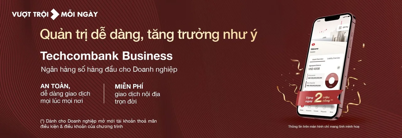 Tiếp tục vị thế dẫn đầu trải nghiệm số hóa ngành tài chính, ngày 25/05/2022, Techcombank chính thức ra mắt Techcombank Business - Ngân hàng số hàng đầu cho doanh nghiệp với vô vàn tiện tích vượt trội: