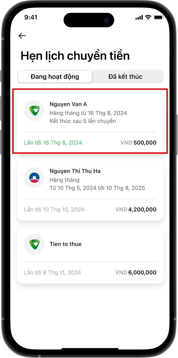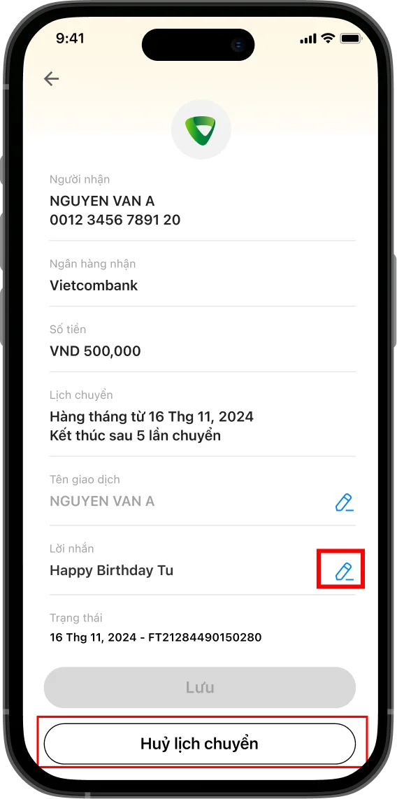Bạn có thể tùy chỉnh và hủy lịch chuyển tiền