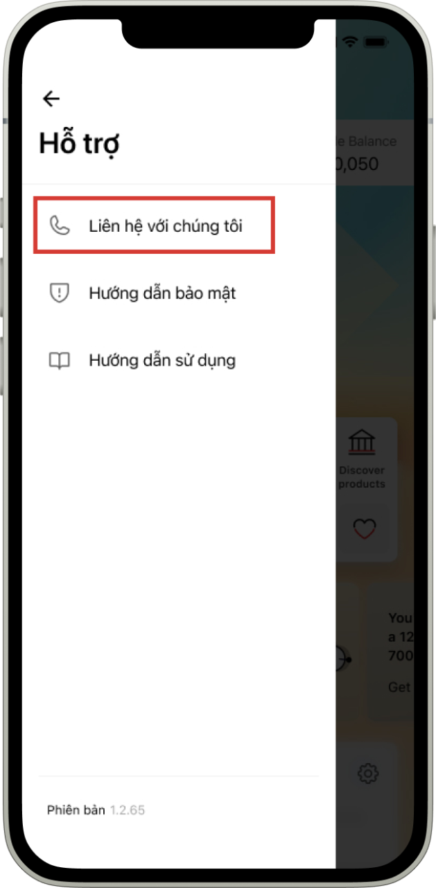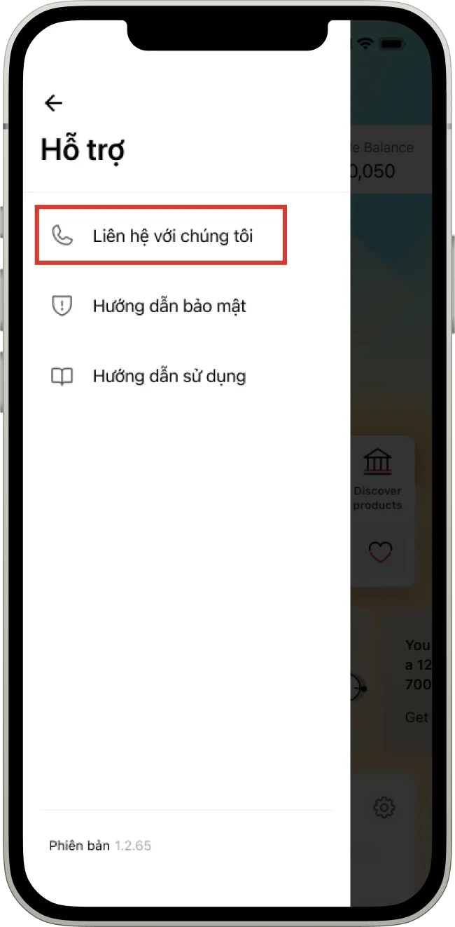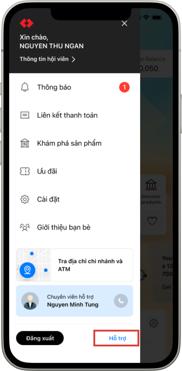 Bước 1: Truy cập Techcombank Mobile > chọn Hỗ trợ
