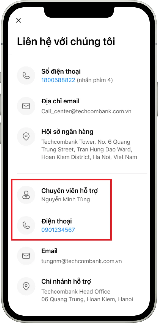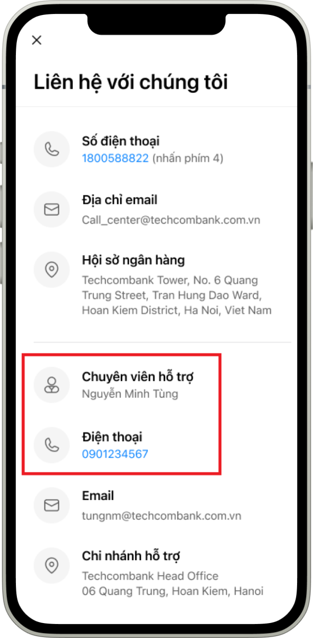 Bước 3: Xem thông tin Chuyên viên hỗ trợ