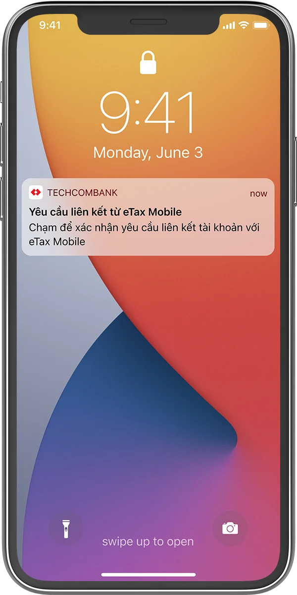 Nhận được thông báo xác nhận liên kết trên Techcombank Mobile app