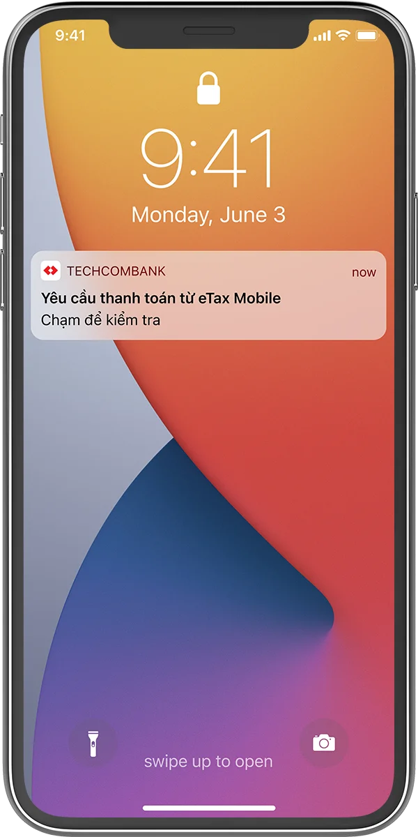 Nhận được thông báo yêu cầu thanh toán eTax trên Techcombank Mobile > Lấy mã Smart OTP