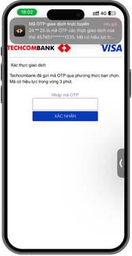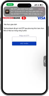 Nhằm nâng cao bảo mật và đảm bảo trải nghiệm thanh toán online luôn thông suốt, từ ngày 21/12/2025, Techcombank sẽ bổ sung phương thức nhận mã OTP qua thông báo trên Techcombank Mobile cho các giao dịch bằng thẻ quốc tế (Visa/Mastercard). Phương thức mới này sẽ hoạt động song song cùng hai kênh nhận mã OTP hiện tại là SMS và Email.