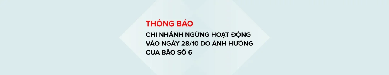 Trước ảnh hưởng của cơn bão số 6 (bão Trà Mi), Techcombank xin thông báo chi nhánh Quảng Bình ngừng hoạt động vào ngày 28/10/2024 nhằm đảm bảo an toàn.