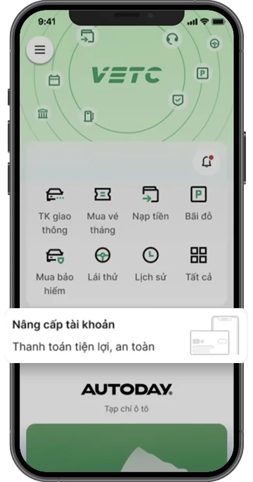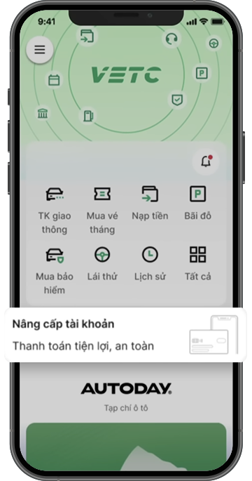 Đăng nhập vào VETC, chọn Nâng cấp tài khoản