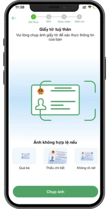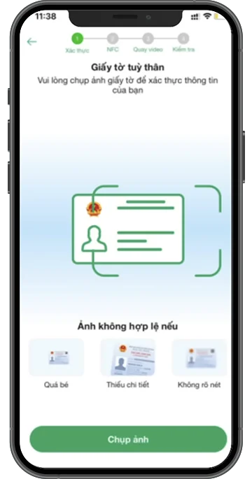 Chụp ảnh CCCD/CC gắn chip và xác thực chân dung theo hướng dẫn