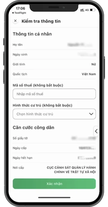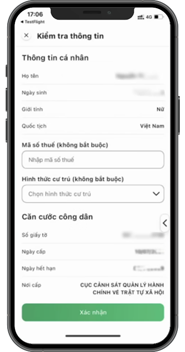 Nhập và kiểm tra kỹ thông tin cá nhân, sau đó chọn Xác nhận