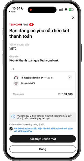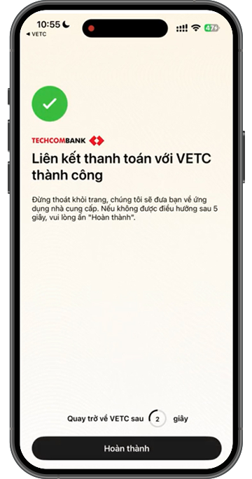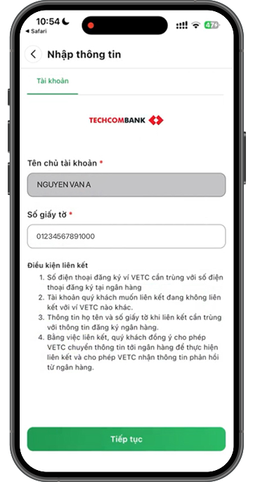 Sau khi chuyển đổi tài khoản thành công, quý khách cần liên kết tài khoản giao thông hiện tại với tài khoản Techcombank để có thể nạp tiền và thanh toán phí: