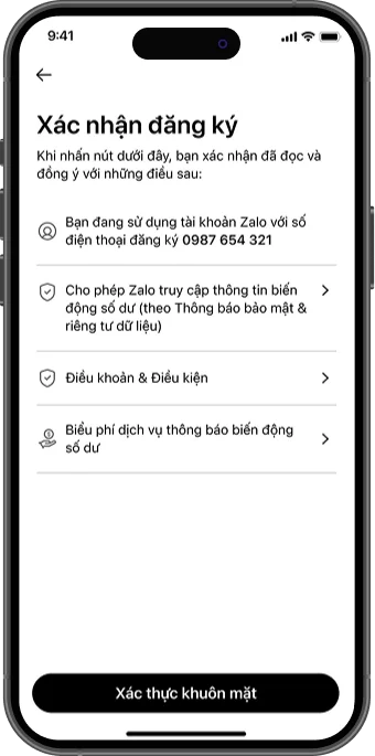 Bước 4: Xác thực khuôn mặt để đăng ký ZNS thành công.