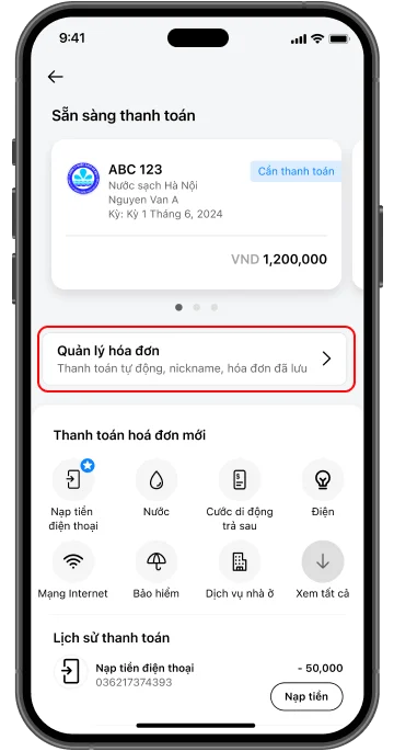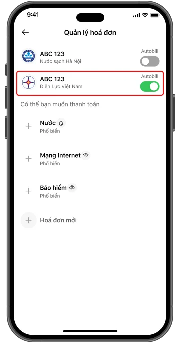 Thanh toán và kích hoạt thanh toán hóa đơn tự động Autobill