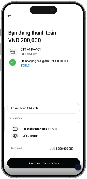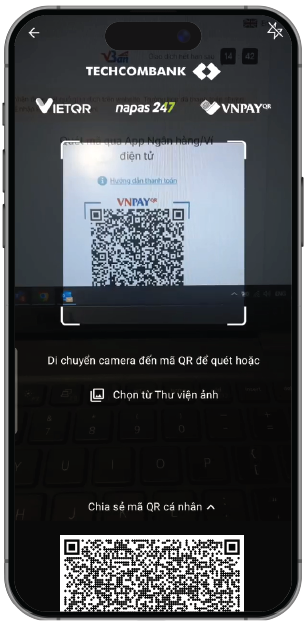 Quét mã QR VNPay để thanh toán qua Techcombank Mobile